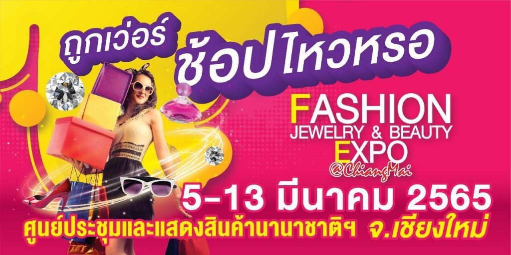 3. งาน Fashion Jewelry & Beauty Expo @Chiangmai เป็นการรวมผู้ประกอบการสินค้าแฟชั่น เครื่องหนัง เครื่องประดับ โดยเปิดเป็น 2 โซน ได้แก่ มหกรรมผ้าไหม และมหกรรมสปา เพื่อกระตุ้นผู้ประกอบการในท้องถิ่นให้สามารถขายสินค้าได้มากขึ้น