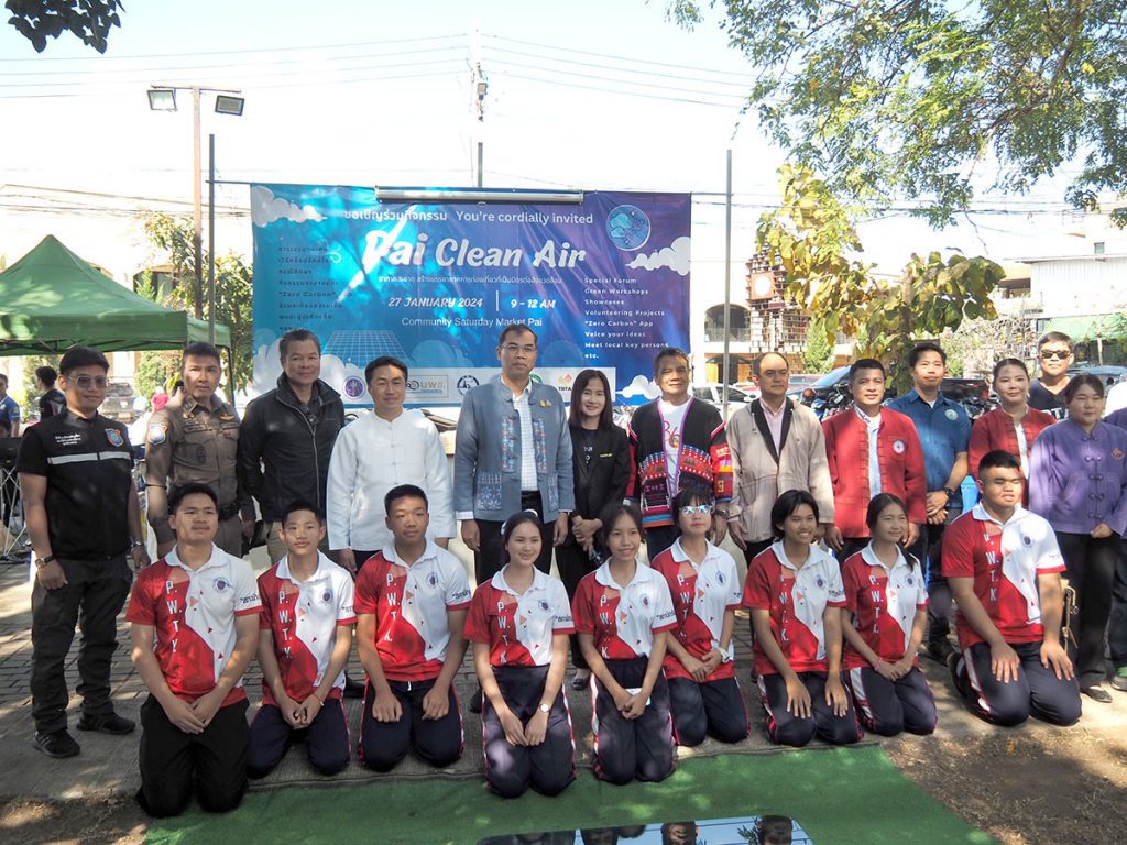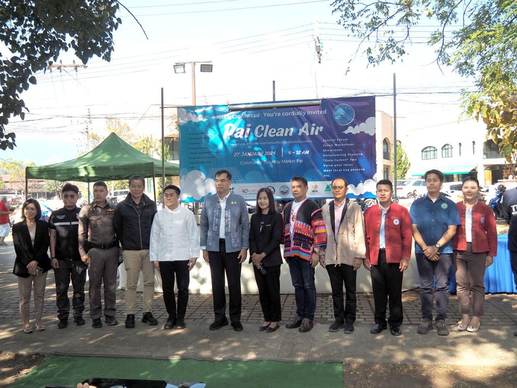 วันที่ 27 ม.ค. 2567 เวลา 10.30 น. ที่บริเวณสวนสาธารณะโพธิ์ร่มรื่น อำเภอปาย จังหวัดแม่ฮ่องสอน นายเชษฐา โมสิกรัตน์ ผู้ว่าราชการจังหวัดแม่ฮ่องสอน เป็นประธานเปิดเวทีเสวนา โครงการ “ปายคลีนแอร์ Pai Clean Air” และมอบนโยบายการพัฒนาที่ยั่งยืน (SDGs) โดยคณะนักวิจัย จากมหาวิทยาลัยแม่โจ้เชียงใหม่ ร่วมกับ และสมาคมท่องเที่ยวอย่างรับผิดชอบ และการท่องเที่ยวแห่งประเทศไทย (ททท.) สำนักงานแม่ฮ่องสอน ดำเนินโครงการวิจัย “กลยุทธ์การตลาด การท่องเที่ยวคาร์บอนสุทธิเป็นศูนย์ สำหรับนักท่องเที่ยวเชิงอาสาสมัครในพื้นที่จังหวัดภาคเหนือตอนบน” โดยมีวัตถุประสงค์เพื่อสร้างการรับรู้และการมีส่วนร่วมในการลดปัญหาหมอกควันในพื้นที่อำเภอปาย จังหวัดแม่ฮ่องสอน และเผยแพร่แนวคิดและเครื่องมือการจัดการการท่องเที่ยวคาร์บอนสุทธิเป็นศูนย์ ตลอดจนส่งเสริมการท่องเที่ยวเชิงอาสาสมัครในประเด็นการท่องเที่ยวคาร์บอนสุทธิเป็นศูนย์ให้เกิดเป็นรูปธรรม