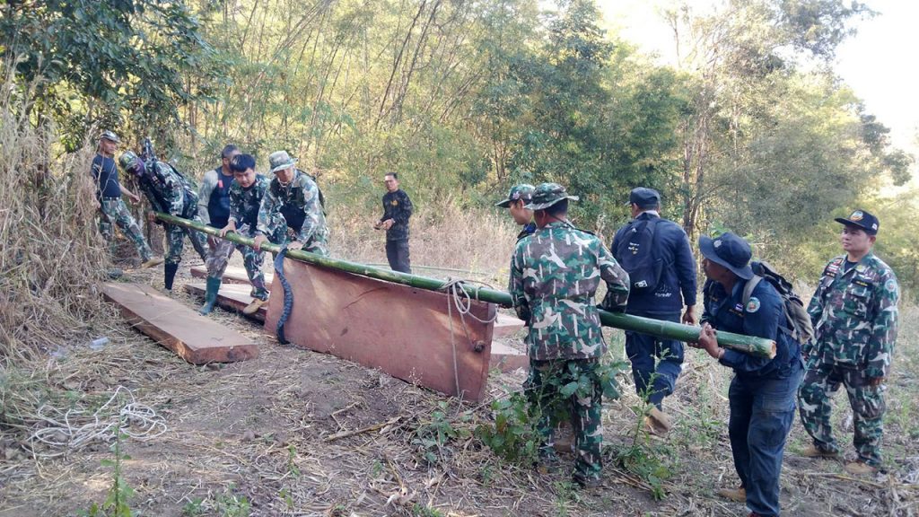 เบื้องต้น เจ้าหน้าที่เขตรักษาพันธ์สัตว์ป่าลุ่มน้ำปาย สนธิกำลัง เจ้าหน้าที่ โซนอำเภอปาย ,จนท.หน่วยป้องกันรักษาป่าที่ มส.19 (แม่ปิง) ร่วมกันลาดตะเวนเข้าพื้นที่ ป่าห้วยผีบอก บ้านกุงแกง ม.11 ต.ทุ่งยาว อ.ปาย จ.แม่ฮ่องสอน หลังได้รับแจ้งจากชุดลาดตะเวน ตรวจพบไม้แปรรูป วางเรียงราย ในลำห้วย จึงเข้าตรวจสอบบริเวณดังกล่าว ไม่พบผู้หนึ่งผู้ใดในพื้นที่ พบ ไม้ประดู่แปรรูป ลักษณะใหม่ – สด ถูกเลื่อยด้วยเลื่อยโซ่ยนต์ และไม่มีรูปรอยดวงตราใดๆ ของรัฐบาล ตีประทับไว้แต่อย่างใด มีจำนวน 6 แผ่น ปริมาตร 0.86 ลบ.ม. ซึ่งลักษณะการเลื่อยไม้ ขนาดของไม้ จึงสันนิษฐานว่าเป็นขบวนการค้าไม้ประดู่เพื่อนำออกนอกพื้นที่ คณะเจ้าหน้าที่ จึงร่วมกันทำการตรวจยึดไม้ โดยลากจากบนเขาลงมาหาถนนที่ จะใส่รถได้ ประมาณ 500 เมตร