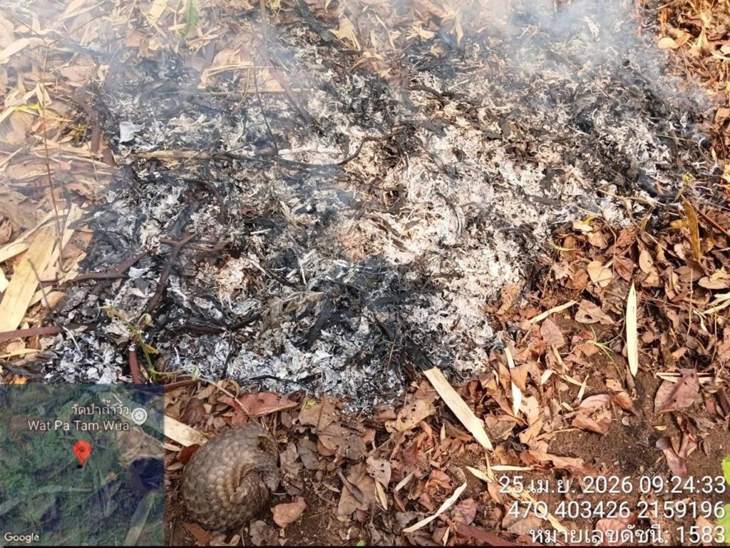 วันที่ 25 เมษายน 2569 สถานการณ์ไฟป่าในพื้นที่อุทยานแห่งชาติถ้ำปลา – น้ำตกผาเสื่อ ยังคงวิกฤต ล่าสุดเจ้าหน้าที่ชุดดับไฟป่าเข้าช่วยเหลือ “ตัวลิ่น” เพศเมียที่ติดอยู่ท่ามกลางวงล้อมของเปลวเพลิง สภาพบาดเจ็บสาหัสก่อนเร่งส่งตัวรักษาที่สถานีเพาะเลี้ยงสัตว์ป่าปางตอง