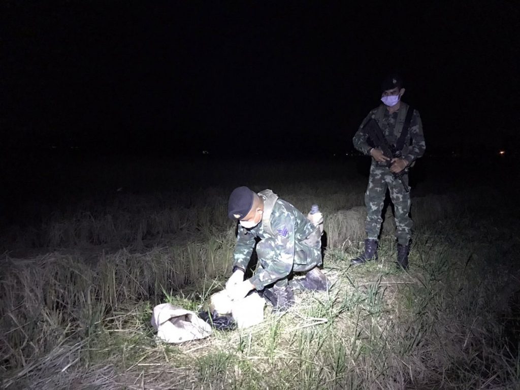 ห้วงหัวค่ำวันที่ 16 ก.ค. 65 หน่วยเฉพาะกิจกรมทหารม้าที่ 3 กองกำลังผาเมือง ปฏิบัติภารกิจ ลาดตระเวนเฝ้าตรวจ บริเวณท่าข้าม บ้านสันผักฮี้ หมู่ 3 ต.แม่สาย อ.แม่สาย จ.เชียงราย ได้ตรวจพบบุคคลต้องสงสัย สะพายกระเป๋าเดินข้ามแม่น้ำสายมาจากฝั่งประเทศเพื่อนบ้าน แต่บุคคลดังกล่าวได้เห็นเจ้าหน้าที่ก่อน จึงทิ้งกระเป๋าและวิ่งกลับไป หน่วยจึงได้เข้าตรวจสอบพื้นที่ พบกระเป๋าสะพายดัดแปลง ภายในพบวัตถุห่อหุ้มด้วยพลาสติกสีทอง จำนวน 5 ก้อน บรรจุยาไอซ์ก้อนละ 1 กก. รวมน้ำหนัก 5 กก. หน่วยจึงได้นำของกลางทั้งหมดส่งให้เจ้าหน้าที่ตำรวจ ดำเนินการตามกฎหมายต่อไป