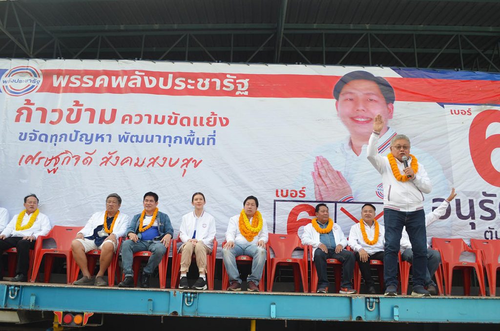 ที่ลานโรงสีข้าวกิตติยะเอ็นเตอร์ไพร์ส ต.ทุ่งรวงทอง อ.จุน จ.พะเยา ร.อ.ธรรมนัส พรหมเผ่า ผู้สมัคร ส.ส.จังหวัดพะเยาเขต 1 พรรคพลังประชารัฐ และในฐานะประธานยุทธศาสตร์เลือกตั้งภาคเหนือ พร้อมด้วย นายบุญสิงห์ วรินทร์รักษ์ น.ส.ธนพร ศรีวิราช นายไพรัตน์ ตันบรรจง ส.ส.บัญชีรายชื่อ และทีมผู้ช่วยหาเสียง ได้มาพบพี่น้องประชาชนในพื้นที่อำเภอจุน พร้อมกับปราศรัยหาเสียงช่วย นายอนุรัตน์ (น้องออม) ตันบรรจง ผู้สมัคร ส.ส.พะเยา เขต 2 พปชร. ได้รับต้องรับอย่างกึกก้องจากประชาชนที่มารอรับเกือบ 2,000 คน จนเก้าอี้ที่จัดเตรียมไว้ไม่เพียงพอบางต้องยืนการปราศรัยอย่างคึกคัก