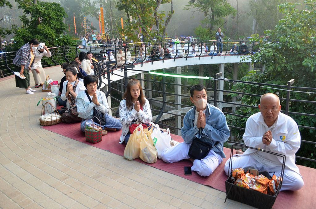 การจัดพิธีเจริญพระพุทธมนต์ตักบาตรบนสกายวอล์คโบราณสถานพระธาตุจอมทอง ครั้งนี้ถือเป็นครั้งแรก ซึ่งมีผู้มาร่วมทำบุญตักบาตรอย่างหนาตา เนื่องจากเป็นแลนด์มาร์คอีกแห่งหนึ่งของ จ.พะเยา นอกจากกว๊านพะเยา ซึ่งอยู่ด้านล่างของโบราณสถานพระธาตุจอมทอง ซึ่งในช่วงเช้าวันนี้ (1 ม.ค.67) บริเวณดังกล่าวอากาศเย็น มีหมอกหนา บนสกายวอล์คมองไม่สามารถมองเห็นกว๊านพะเยา