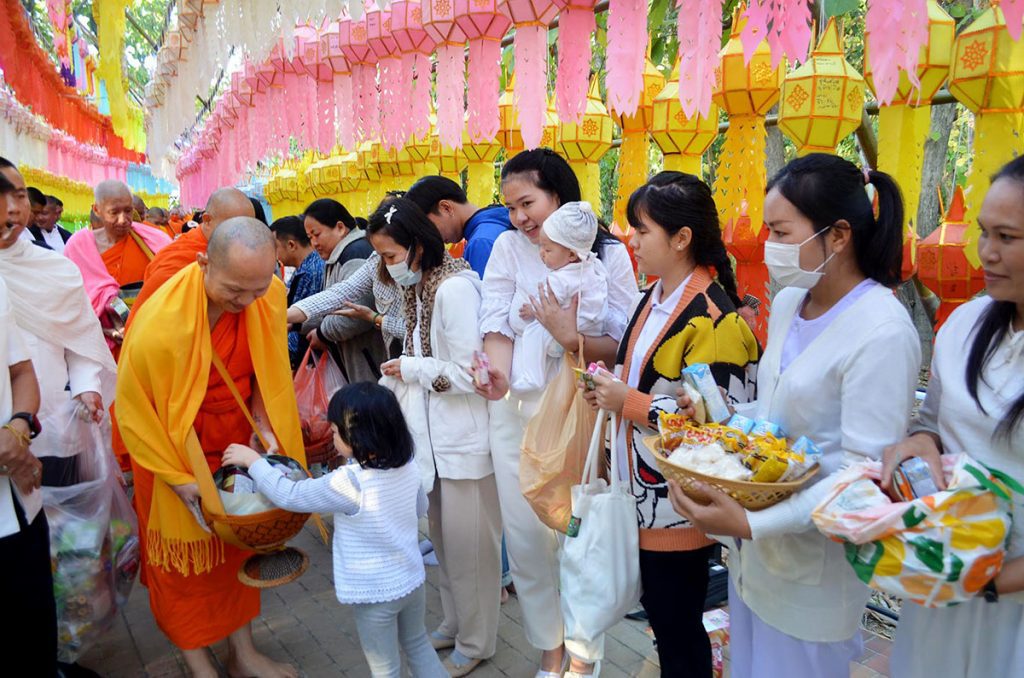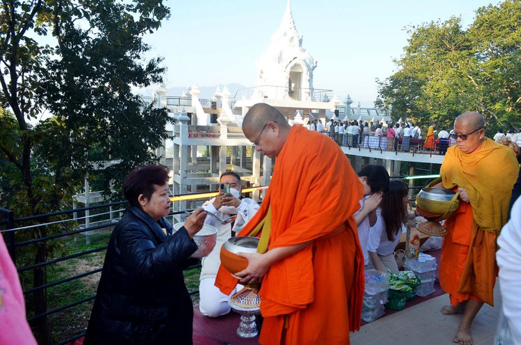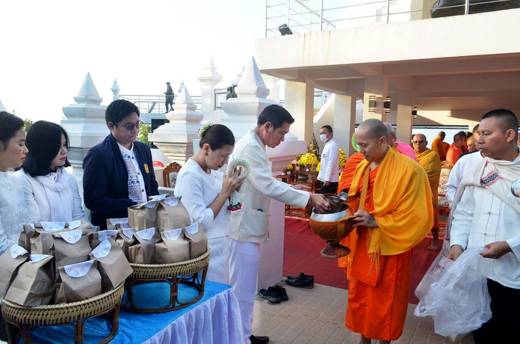 จังหวัดพะเยา จัดพิธีเจริญพระพุทธมนต์ตักบาตรวันปีใหม่ บนสกายวอล์คโบราณสถานพระธาตุจอมทอง วัดศรีโคมคำ พระอารามหลวง ท่ามกลางบรรยากาศสดชื่นเย็นสบาย