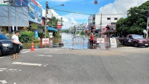 Today’s weather conditions- heavy rain, flooding, Kwan Phayao, water pumps, sandbags, Wat Sri Khom Kham, Thailand 12