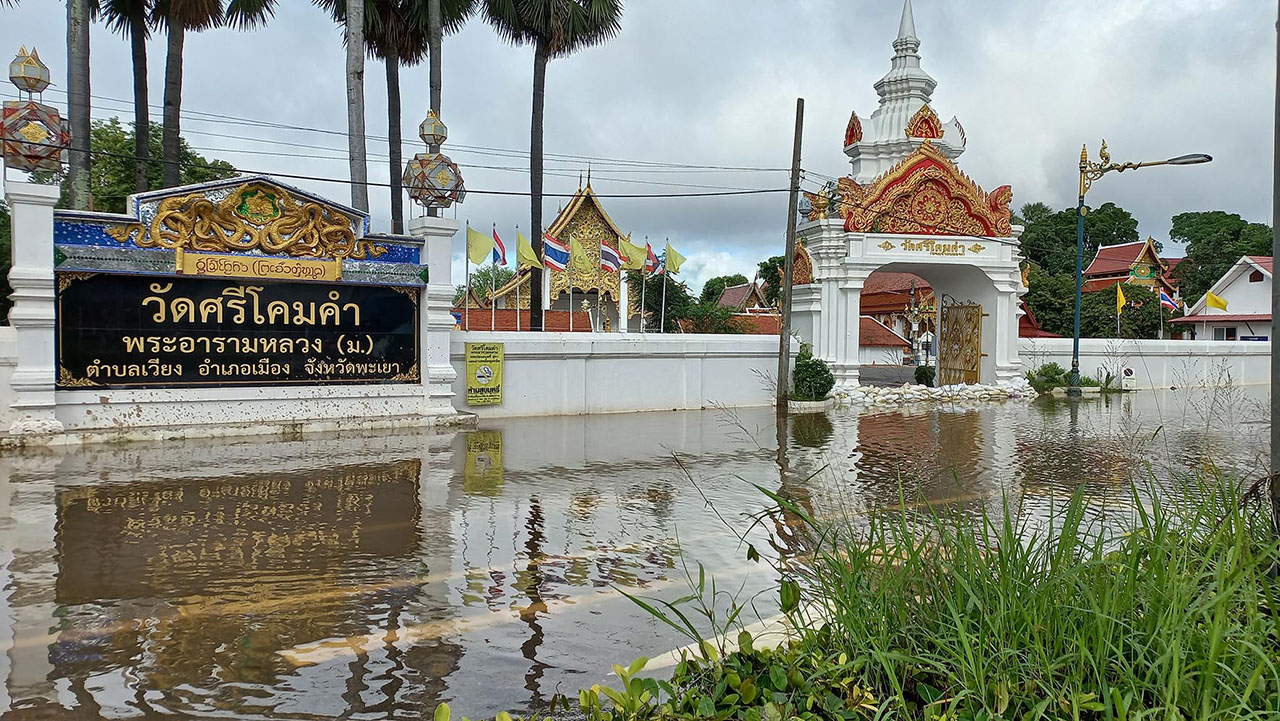 Today’s weather conditions- heavy rain, flooding, Kwan Phayao, water pumps, sandbags, Wat Sri Khom Kham, Thailand 4