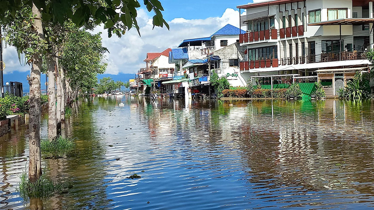 Today’s weather conditions- heavy rain, flooding, Kwan Phayao, water pumps, sandbags, Wat Sri Khom Kham, Thailand 9
