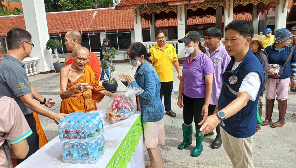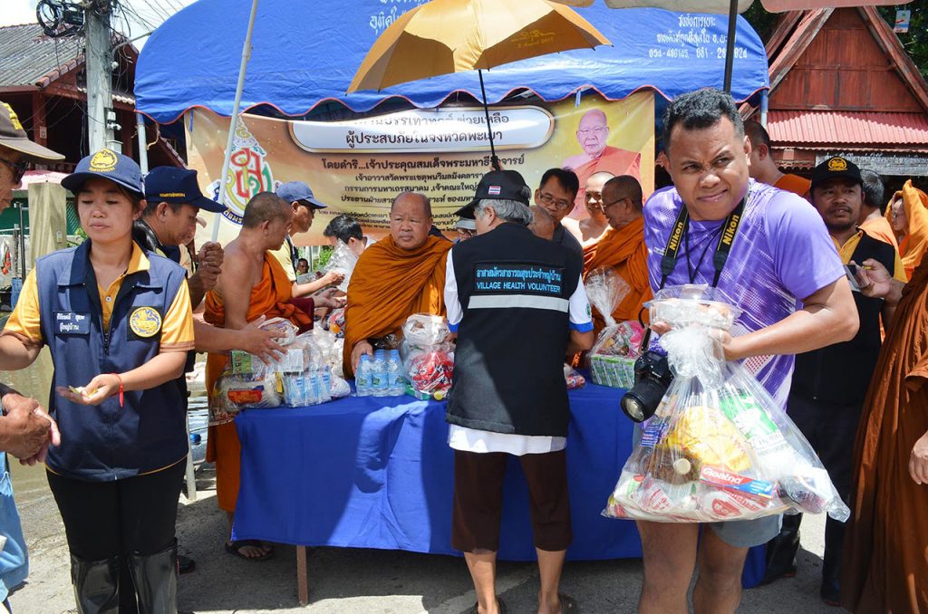 ผู้สื่อข่าวรายงานว่า สถานการณ์น้ำกว้าพะเยา วันที่ 31 ส.ค. ยังทรงตัวอยู่ที่ 74.447 ล้าน ลบ.ม.ไม่มีทีท่าว่าจะลด และยังมีฝนตกหนักต่อเนื่อง ประชาชนที่อาศัยอยู่ในชุมชนรอบกว๊านพะเยา นับพันหลังคาเรือนยังได้รับผลกระทบจากภัยน้ำท่วมต่อเนื่องมากว่า 10 วันแล้ว โดยวันนี้ พระเทพญาณเวที ที่ปรึกษาเจ้าคณะภาค 6 เจ้าอาวาสวัดศรีอุโมงค์คำ พร้อมด้วยพระราชปริยัติ เจ้าคณะจังหวัดพะเยา พระราชรัตนมุนี (เจ้าคุณเทียม) ที่ปรึกษาเจ้าคณะจังหวัดพะเยา และคณะสงฆ์ จ.พะเยา ได้นำถุงยังชีพมอบแก่ประชาชนที่ได้รับผลกระทบภัยน้ำท่วม ตามโครงการ โรงทานบรรเทาทุกข์ช่วยเหลือผู้ประสบภัย จ.พะเยา โดยดำริเจ้าประคุณสมเด็จพระมหาธีราจารย์ โดยมีสมาคมการค้านักพัฒนาอสังหาริมทรัพย์ไทย นำโดย อ.ดร.ถนอมดีสร้อย นายกสมาคมฯ ได้นำถุงยังชีพมาร่วมสมทบด้วย จุดแรกที่ไปมอบถุงยังชีพ หน้าพระวิหารหลวง วัดศรีโคมคำ พระอารามหลวงรวม 3 ชุมชน ได้แก่ ชุมชนวัดศรีโคมคำ ชุมชนสันแกลบดำ เทศบาลเมืองพะเยา ชุมชนบ้านแท่นดอกไม้ ต.บ้านต๋อม จากนั้นไปชุมชนวัดศรีอุโมงค์คำ ชุมชนบ้านทุ่งกิ่ว ต.บ้านตุ่น ชุมชนบ้านสันช้างหิน และชุมชนบ้านร่องไฮ ต.แม่ใส อ.เมืองพะเยา