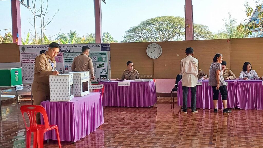 วันที่ 1 มี ค. 69 เวลา 08.00 น. นางปนัดดา จันทร์โชติญาณ ผอ.กกต.พะเยา พร้อมทีมงานมาดูความเรียบร้อยก่อนการเปิดหีบบัตรลงคะแนนเลือกตั้งใหม่ สส.เขต และ สส.บัญชีรายชื่อ หน่วยเลือกตั้งที่ 6 โดยมีการเปลี่ยนคณะกรรมการประจำหน่วยเลือกตั้งใหม่ทั้งหน่วย ซึ่งฝ่ายปกครองได้ส่งเจ้าหน้าที่ระดับป้องกันจังหวัด พร้อมทีมงานมาเป็น กปน.อำนวยความสะดวกแก่ประชาชนผู้มาใช้สิทธิและป้องกันการผิดพลาด บรรยากาศการเปิดหีบบัตรเป็นไปอย่างเรียบร้อยมีประชาชนบางตามทยอยมาใช้สิทธิ