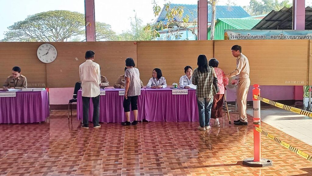 วันที่ 1 มี ค. 69 เวลา 08.00 น. นางปนัดดา จันทร์โชติญาณ ผอ.กกต.พะเยา พร้อมทีมงานมาดูความเรียบร้อยก่อนการเปิดหีบบัตรลงคะแนนเลือกตั้งใหม่ สส.เขต และ สส.บัญชีรายชื่อ หน่วยเลือกตั้งที่ 6 โดยมีการเปลี่ยนคณะกรรมการประจำหน่วยเลือกตั้งใหม่ทั้งหน่วย ซึ่งฝ่ายปกครองได้ส่งเจ้าหน้าที่ระดับป้องกันจังหวัด พร้อมทีมงานมาเป็น กปน.อำนวยความสะดวกแก่ประชาชนผู้มาใช้สิทธิและป้องกันการผิดพลาด บรรยากาศการเปิดหีบบัตรเป็นไปอย่างเรียบร้อยมีประชาชนบางตามทยอยมาใช้สิทธิ