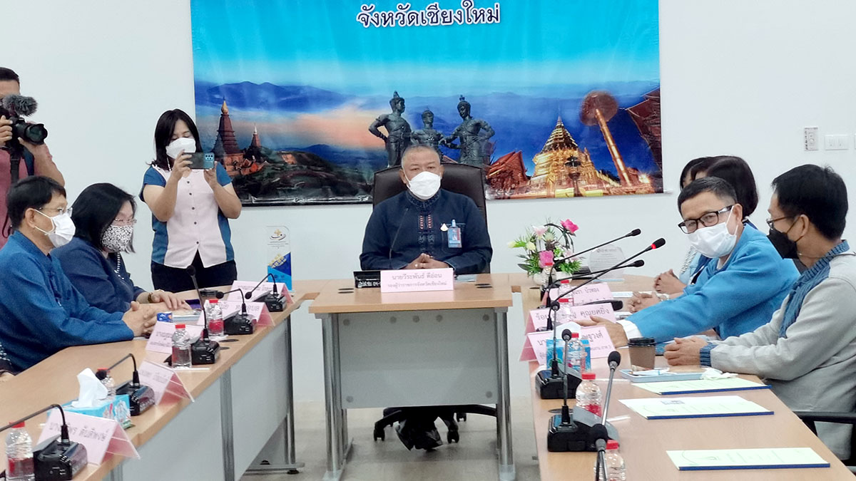 เมื่อเวลา 13.30 น.วันที่ 6 พ.ค. 65 ที่ห้องประชุมชั้น 2 สำนักงานประกันสังคมจังหวัดเชียงใหม่ นายวีระพันธ์ ดีอ่อน รองผู้ว่าราชการจังหวัดเชียงใหม่ พร้อมด้วย ร้อยเอกจรัญ คุณยศยิ่ง สวัสดิการและคุ้มครองแรงงานจังหวัดเชียงใหม่ นายวินัย ทองอุบล จัดหางานจังหวัดเชียงใหม่ นางนภวรรณ โกละกะ แรงงานจังหวัดเชียงใหม่ นางอัจฉรา บัวทอง ประกันสังคมจังหวัดเชียงใหม่ และหน่วยงานที่เกี่ยวข้อง ได้ประชุมและแถลงข่าวถึงแนวทางการช่วยเหลือผู้ประกอบการและลูกจ้างของศูนย์การค้า พรอมเมนาดา เชียงใหม่ ที่ได้ประกาศปิดชั่วคราว ทำให้ร้านค้าและลูกจ้างได้รับผลกระทบ