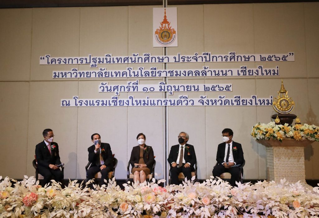 วันที่ 10 มิถุนายน 2565 มหาวิทยาลัยเทคโนโลยีราชมงคลล้านนา จัดพิธีปฐมนิเทศนักศึกษาใหม่ ประจำปีการศึกษา 2565 โดย ผู้ช่วยศาสตราจารย์ ดร.จัตตุฤทธิ์ ทองปรอน รักษาราชการแทน อธิการบดี ให้เกียรติเป็นประธานพิธี และให้โอวาทแก่นักศึกษาใหม่ปีการศึกษา 2565 ในระดับประกาศนียบัตรวิชาชีพ (ปวช.) ระดับประกาศนียบัตรวิชาชีพชั้นสูง (ปวส.) และระดับปริญญาตรี คณะบริหารธุรกิจและศิลปศาสตร์ คณะวิศวกรรมศาสตร์ คณะศิลปกรรมและสถาปัตยกรรมศาสตร์ วิทยาลัยเทคโนโลยีและสหวิทยาการ จำนวน 2,300 คน ณ โรงแรมเชียงใหม่แกรนด์วิว จังหวัดเชียงใหม่
