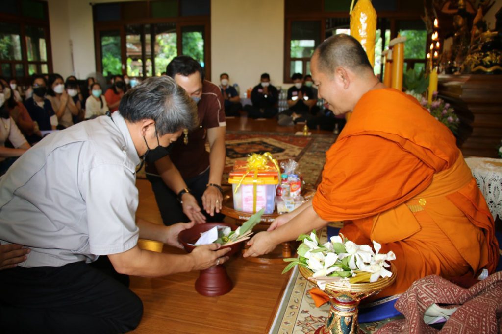 วันที่ 7 กรกฏาคม 2565 ผู้ช่วยศาสตราจารย์ชัยปฐมพร ธนพัฒน์ปวงวัน ผู้อำนวยการศูนย์วัฒนธรรมศึกษา พร้อมด้วยนายทินภัทร อุปราสิทธิ์ ผู้อำนวยการกองกลาง นำคณะบุคลากรจากหน่วยงานภายในสังกัดสำนักงานอธิการบดี มหาวิทยาลัยเทคโนโลยีราชมงคลล้านนา และนักศึกษา ถวายเทียนพรรษาพร้อมด้วยจตุปัจจัยไทยธรรมและผ้าอาบน้ำฝนแด่พระครูธีรสุตพจน์ เจ้าอาวาสวัดผาลาด ตำบลสุเทพ อำเภอเมือง จังหวัดเชียงใหม่ เนื่องในเทศกาลเข้าพรรษา ประจำปี 2565 เพื่อเป็นการสืบทอดวัฒนธรรมทางพุทธศาสนาอันดีงาม และส่งเสริมให้ผู้บริหาร บุคลากรภายและนักศึกษา ได้มีโอกาสร่วมทำบุญถวายเทียนพรรษา เนื่องในวันเข้าพรรษา เป็นการสืบทอดพระพุทธศาสนาให้คงอยู่ และเป็นที่พึ่งทางจิตใจของพุทธศาสนิกชนสืบต่อไป