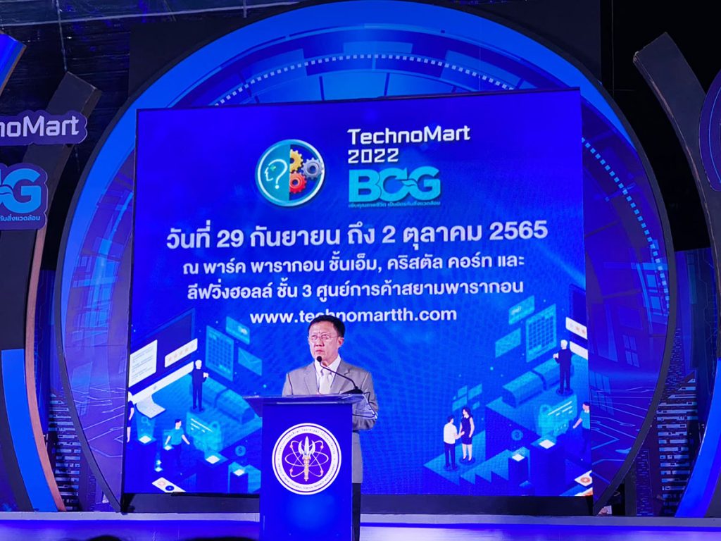 ผศ.ไพโรจน์ วรพจน์พรชัย ผู้จัดการคลินิคเทคโนโลยี มหาวิทยาลัยเทคโนโลยีราชมงคลล้านนา พร้อมคณะทำงาน ร่วมจัดแสดงผลงานนวัตกรรมผ้าทอย้อมสีธรรมชาติห้อม หนึ่งในผลงานวิจัยด้านเทคโนโลยี และนวัตกรรมที่โดดเด่นมหาวิทยาลัยเทคโนโลยีราชมงคลล้านนา ในงานเทคโนโลยีและนวัตกรรมของไทย ประจําปี 2565 : TechnoMart 2022 “พลิกโฉมประเทศไทย สู่เศรษฐกิจสร้างคุณค่า สังคมเดินหน้าอย่างยั่งยืน” ณ Parc Paragon ชั้น M ศูนย์การค้าสยามพารากอน กรุงเทพฯ ระหว่างวันที่ 29 กันยายน – 2 ตุลาคม พ.ศ. 2565 ร่วมกับหน่วยงานภาคีเครือข่าย ภายใต้การกำกับของกระทรวงการอุดมศึกษา วิทยาศาสตร์ วิจัยและนวัตกรรม (อว.) มากกว่า 80 หน่วยงาน เพื่อแสดงศักยภาพการผลิตและพัฒนาผลงานวิจัยพร้อมใช้ที่ตอบโจทย์ความต้องการของตลาด รวมถึงส่งเสริมให้เกิดการเจรจาและซื้อขายในเชิงธุรกิจมีการแลกเปลี่ยนเรียนรู้ระหว่างผู้ประกอบการ นักวิชาการ นักวิจัย และผู้ที่สนใจ เป็นการสร้างแรงบันดาลใจให้เกิดการพัฒนาผลงานวิจัยด้านเทคโนโลยี และนวัตกรรมที่ตอบโจทย์ความต้องการของตลาด ช่วยขับเคลื่อนเศรษฐกิจของประเทศอย่างยั่งยืน โดยมี ดร.ดนุช ตันเทอดทิตย์ เลขานุการรัฐมนตรีว่าการกระทรวงการอุดมศึกษา วิทยาศาสตร์ วิจัยและนวัตกรรม (อว.) พร้อมด้วย นางสาวสุณีย์ เลิศเพียรธรรม ผู้ตรวจราชการ อว., นายเอกพงศ์ มุสิกะเจริญ รองผู้อำนวยการสำนักงานบริหารเทคโนโลยีสารสนเทศเพื่อการพัฒนาการศึกษา (UniNet) และคณะผู้บริหารกระทรวงการอุดมศึกษา วิทยาศาสตร์ วิจัยและนวัตกรรม (อว.) เป็นประธานพิธีเปิดงาน ในวันที่ 29 กันยายน ที่ผ่านมา