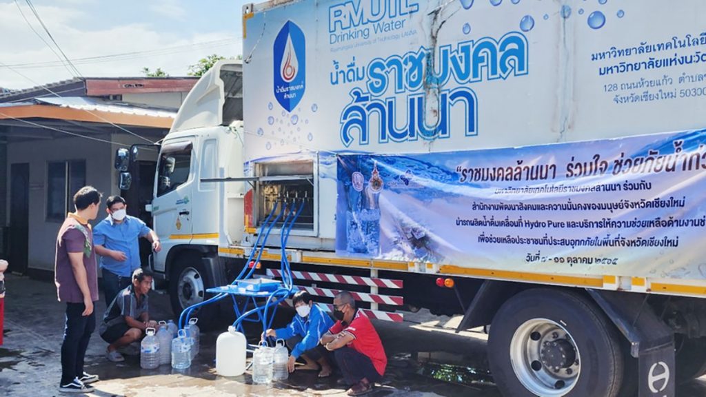 สถาบันถ่ายทอดเทคโนโลยีสู่ชุมชน มหาวิทยาลัยเทคโนโลยีราชมงคลล้านนา นำโดย ผู้ช่วยศาสตราจารย์เกรียงไกร ธารพรศรี ผู้อำนวยการสถาบันฯ พร้อมด้วยณะทำงาน นำรถผลิตน้ำดื่มเคลื่อนที่ (Hydro Pure) ลงพื้นที่เทศบาลตำบลหนองหอย ให้บริการน้ำดื่มสะอาดแก่ผู้ประสบอุทกภัย ทั้งนี้คณะทำงานได้บริการให้ความช่วยเหลือด้านงานช่างเบื้องต้น สำหรับรถผลิตน้ำดื่มเคลื่อนที่จะให้บริการถึงวันที่ 11 ตุลาคม 2565 ณ เทศบาลตำบลหนองหอย หากหน่วยงานใดมีความประสงค์จะรับบริการรถผลิตน้ำดื่มสามารถติดต่อได้ที่ สถาบันถ่ายทอดเทคโนโลยีสู่ชุมชม หมายเลขโทรศัพท์ 053266516 ต่อ 1032