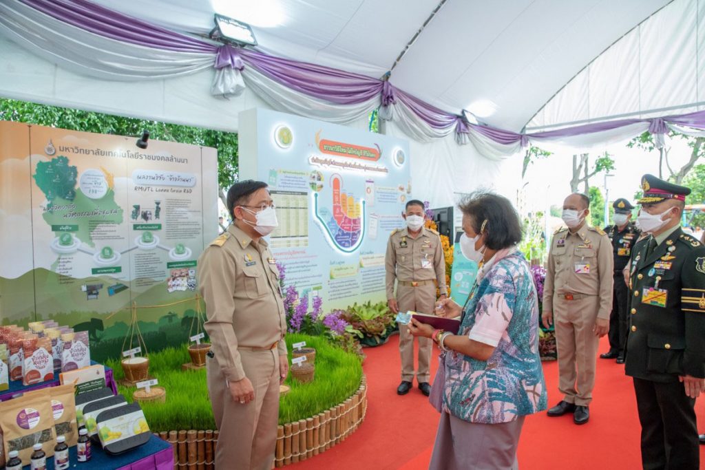 ในโอกาสนี้ ผู้ช่วยศาสตราจารย์ ดร.จัตตุฤทธิ์ ทองปรอน รักษาราชการแทนอธิการบดี มหาวิทยาลัยเทคโนโลยีราชมงคลล้านนาเข้าเฝ้าฯ สมเด็จพระกนิษฐาธิราชเจ้า กรมสมเด็จพระเทพรัตนราชสุดาฯ สยามบรมราชกุมารี เพื่อถวายรายงานผลงานวิจัยในเรื่อง “ข้าวล้านนา มทร.ล้านนา RMUTL Lanna Grain RAD” ซึ่งเป็นโครงการที่ มหาวิทยาลัยได้ร่วมกับกลุ่มภาคีเครือข่าย ใช้ข้าวเป็นกลไกในการแก้ไขปัญหาบางส่วนให้กับชุมชน โดยใช้เทคโนโลยีเข้าไปช่วยในขั้นตอนกระบวนการปลูก การแปรรูปผลิตภัณฑ์ รวมถึงการวิจัยเพื่อพัฒนาและปรับปรุงสายพันธุ์ข้าวเป็นสายพันธุ์ใหม่ซึ่งมีคุณภาพที่ดียิ่งขึ้น เพื่อช่วยเหลือเกษตรกรให้มีผลผลิตและสามารถสร้างรายได้ที่มากจากเดิม รวมถึงการถ่ายทอดเทคโนโลยีเพื่อรับรองเกษตรปลอดภัยแบบมีส่วนร่วมให้แก่กลุ่มผู้ผลิตข้าวเพื่อเพิ่มมูลค่าผลิตภัณฑ์ข้าวในชุมชน สร้างสมรรถนะในการผลิตทางการเกษตรเพื่อเป็นการสร้างความมั่นคงทางเศรษฐกิจให้กับชุมชน แลกเปลี่ยนข้อมูลเพื่อนำมาวิจัยนำไปสู่การวางแผนการพัฒนาเชิงพื้นที่ให้มีความสอดคล้องและตอบสนองต่อความต้องการของเกษตรกรอย่างมีส่วนร่วมส่งผลให้มีการจัดการทรัพยากรชุมชนอย่างมีประสิทธิภาพ สร้างความมั่นคงทางด้านอาหารให้แก่ชุมชนบนพื้นที่สูง