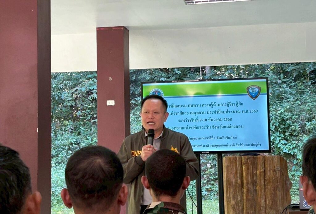 วันที่ 11 ธันวาคม 2568 อุทยานแห่งชาติสาละวิน อำเภอแม่สะเรียง จังหวัดแม่ฮ่องสอน นายลิขิต ไหวพรม หัวหน้าอุทยานแห่งชาติสาละวิน เปิดเผยว่า ได้มอบหมายให้เจ้าหน้าที่อุทยานแห่งชาติสาละวิน เข้ารับการฝึกทบทวนความรู้ด้านการกู้ชีพ–กู้ภัยในพื้นที่อุทยานแห่งชาติและวนอุทยาน เพื่อยกระดับมาตรฐานการปฏิบัติงานให้สอดคล้องกับมาตรฐานสากล และเพิ่มประสิทธิภาพในการช่วยเหลือ ป้องกันชีวิตและทรัพย์สินของนักท่องเที่ยวให้มีความถูกต้อง รวดเร็ว และปลอดภัย ระยะเวลา 2 วัน จากเจ้าหน้าที่ศูนย์กู้ภัยอุทยานแห่งชาติที่ 1 จังหวัดเชียงใหม่
