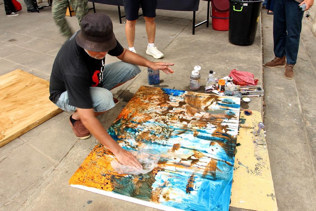 เวลา 10.00 น.วันที่ 5 พ.ค.68 ที่ลานใต้สะพาน ขัวพญามังราย เขตเทศบาลนครเชียงราย กลุ่มศิลปินขัวศิลปะ ประมาณ 30 คน ได้รวมตัวกันเพื่อจัดกิจกรรม WORKSHOPวาดภาพแม่น้ำกก ที่ไม่เหมือนเดิม หลังพบสารปนเปื้อนในแม่น้ำกก ทำให้ประชาชนชาวเชียงรายไม่กล้าใช้น้ำจากแม่น้ำกก มาอุปโภคบริโภค โดยต่างวาดภาพโดยใช้เทคนิคต่างๆ เฉพาะตัว เพื่อสื่อสารให้คนภายนอกได้เห็นแม่น้ำกกที่เปลี่ยนไปผ่านผลงานศิลปะ