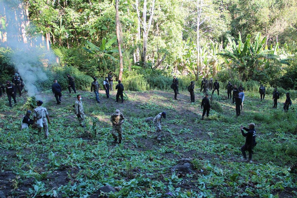 จากการขยายผลเพิ่มเติมพบว่า พื้นที่ลักลอบปลูกฝิ่นในพื้นที่ มีจำนวน 3 แปลง โดยแปลงแรก แปลงฝิ่นขนาด กว้าง 25 เมตร ยาว 50 คิดเป็นพื้นที่ 0.78 ไร่ , ความหนาแน่น 80% , ต้นฝิ่นสูง 60 – 70 ซ.ม. , ดอก 80% , กรีด 20% แปลงที่ 2 ฝิ่นขนาด กว้าง 30 ม.ยาว 50 ม.คิดเป็นพื้นที่ 0.94 ไร่ ความหนาแน่น 80 % ต้นฝิ่นสูง 70-80 ซม. ดอก 80 % กรีด % และ แปลงที่สาม พื้นที่เตรียมปลูกฝิ่นรุ่นต่อไป