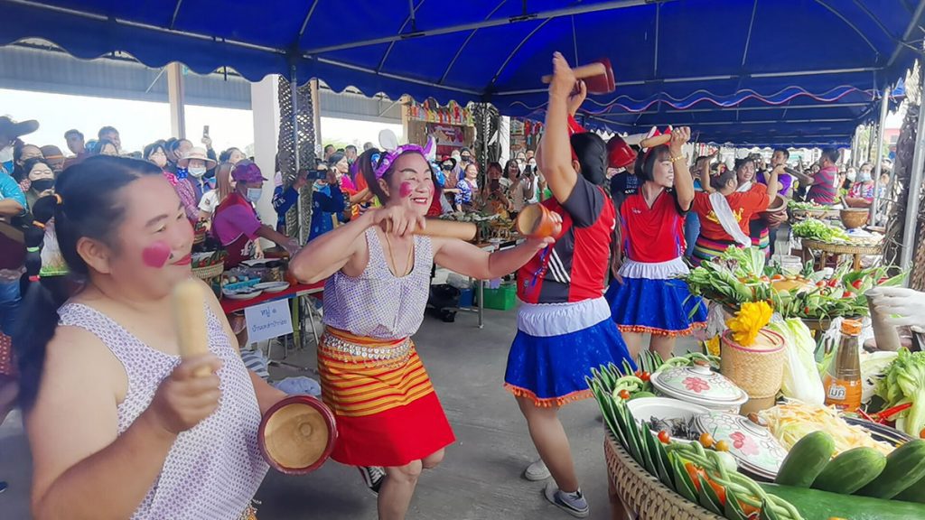 อย่างเด็ด ลีลาไม่เบา กลุ่มแม่บ้านตำบลน้ำดิบ ลำพูน 17 หมู่บ้าน แข่งส้มตำลีลาชั้นยอด ทั้งการแต่งตัว ทั้งท่าเต้น เต้นจนล้มแต่ก็ลุกมาเต้นต่อได้ เรียกเสียงฮือฮาจากทั้งคณะกรรมการและคนร่วมงานได้จำนวนมาก สร้างสีสันให้กับงานวิถีชีวิตคนตำบลน้ำดิบ กับไก่เหล่าป่าก๋อย ครั้งที่ 7