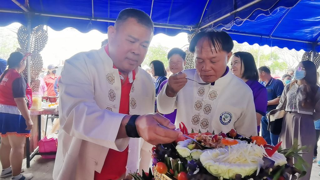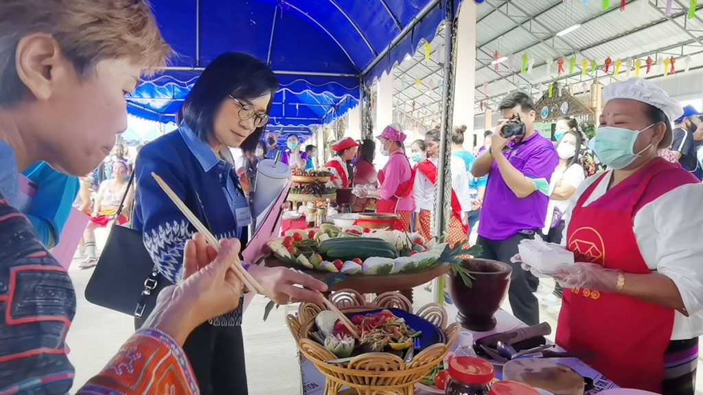 นายวิทยา สะคำปัน รองนายกองค์การบริหารส่วนจังหวัดลำพูน ได้มาเป็นคณะกรรมการชิมส้มตำจากกกลุ่มแม่บ้านด้วย พร้อมกล่าวว่า ส้มตำต่างกันที่ใครจะใส่ปลาร้ามากน้อย ใครจะหวานไม่หวานต่างกัน แต่ฝีมือของแม่บ้านตำบลน้ำดิบสุดยอด