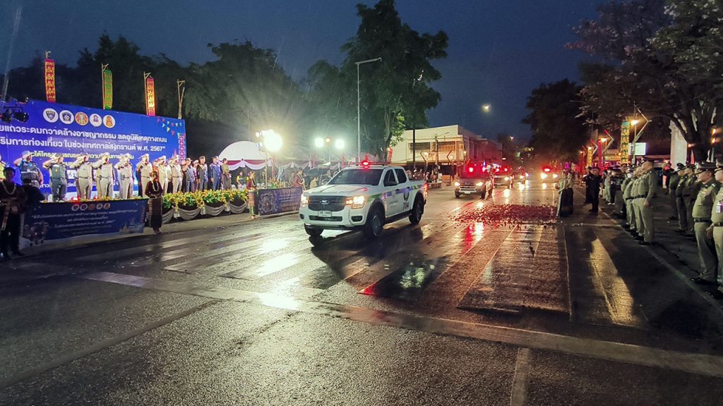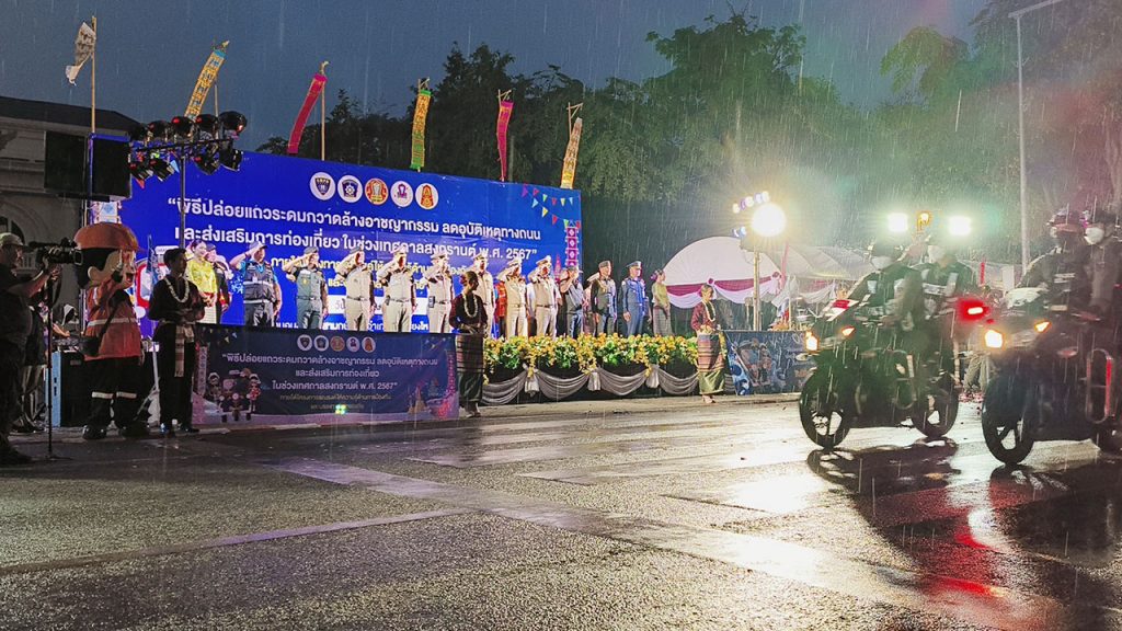 เชียงใหม่ ผู้ช่วย ผบ.ตร. ปล่อยแถวกวาดล้างอาชญากรรม ลดอุบัติเหตุทางถนน ส่งเสริมการท่องเที่ยวช่วงเทศกาลสงกรานต์ 2567 ท่ามกลางสายฝน บูรณาการทุกภาคส่วนดูแลความปลอดภัยทั้งชีวิตและทรัพย์สินให้กับนักท่องเที่ยว พร้อมตั้งจุดตรวจจุดสกัดทั้งสายหลักและสายรอง ป้องกันปราบปรามอาชญากรรม สิ่งของผิดกฎหมายและยาเสพติด