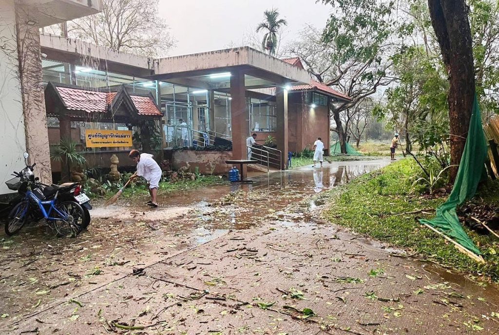 เชียงราย พายุฤดูร้อนพัด รพ.แม่ลาว เสียหาย งดรับผู้ป่วย เลื่อนตรวจ ป้ายล้มทับคนเจ็บ