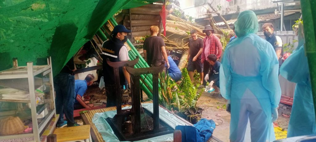 สอบถามกลุ่มชาวบ้านที่เห็นเหตุการณ์ให้ข้อมูลว่า ช่วงบ่ายวันนี้ได้มีพายุฤดูร้อนพัดกระแสลมมาอย่างแรง ก่อนจะมีฝนตกหนัก ต่อมาได้มีต้นโพธิ์ขนาดใหญ่ประมาณ 6 คนโอบ และเป็นต้นโพธิ์เก่าแก่ อายุประมาณ 100 ปี ได้ล้มลงมาเกิดเสียงดังสนั่นหวั่นไหวในขณะที่ผู้บาดเจ็บทั้งสองคนอยู่ใกล้กับต้นโพธิ์ดังกล่าว ทำให้ได้รับบาดเจ็บ ภายหลังการสอบถามแล้ว ทางเจ้าหน้าที่คาดว่า พื้นดินคงจะรับน้ำหนักของต้นโพธิ์ไว้ไม่ได้ เนื่องจากมีฝนตกลงมาอย่างหนัก เมื่อรากต้นโพธิ์หลุดออกมาทำให้ต้นโพธิ์ล้มลงดังกล่าว ในเบื้องต้นทางเจ้าหน้าที่เทศบาลฯ ได้ระดมกำลังกันตัดกิ่งต้นโพธิ์ และลำต้น เพื่อให้ชาวบ้านได้กลับมาใช้ชีวิตได้ตามปกติ พร้อมสำรวจความเสียหายโดยรอบพื้นที่เพื่อให้การช่วยเหลือต่อไป