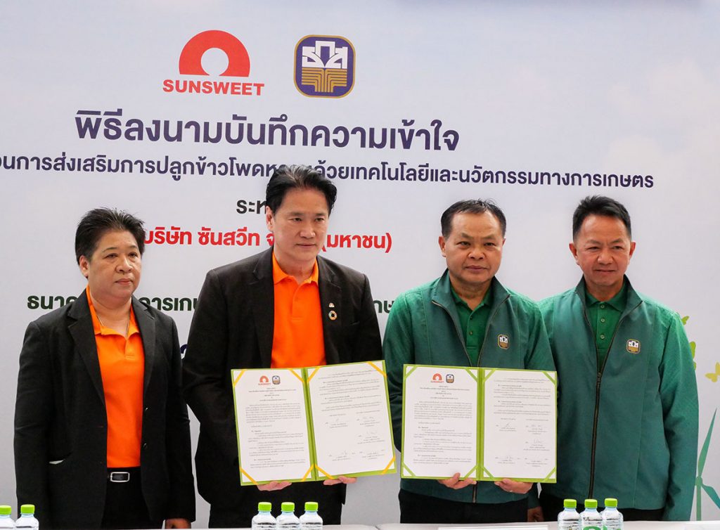 บริษัท ซันสวีท จำกัด (มหาชน) หรือ SUN ผู้ผลิตและจำหน่ายข้าวโพดหวานแปรรูปและผลิตภัณฑ์แปรรูปสินค้าเกษตรอื่นๆ ภายใต้ตราสินค้า “KC” ร่วมลงนาม MOU ร่วมกับ ธนาคารเพื่อการเกษตรและสหกรณ์การเกษตร (ธ.ก.ส.) ภายใต้โครงการขับเคลื่อนการส่งเสริมการปลูกข้าวโพดหวานด้วยเทคโนโลยีและนวัตกรรมทางการเกษตร เมื่อวันที่ 21 ธันวาคม 2566 ณ บูธนิทรรศการ ธ.ก.ส. ในงาน “เกษตรแม่โจ้ 90 ปี : เกษตร อาหาร สุขภาพ” มหาวิทยาลัยแม่โจ้