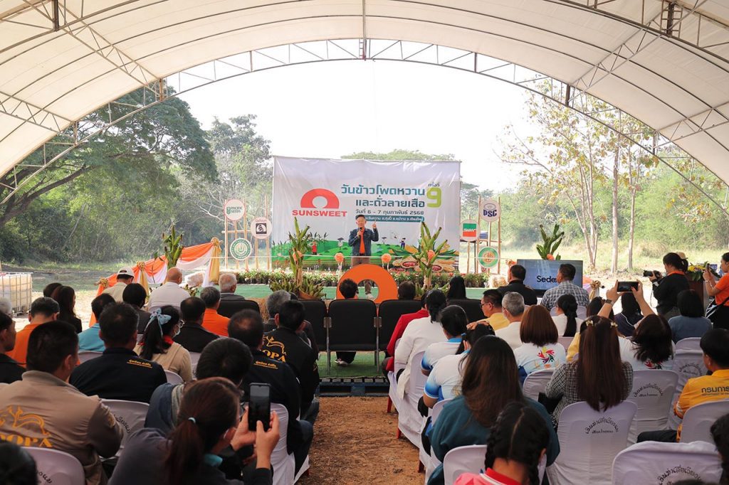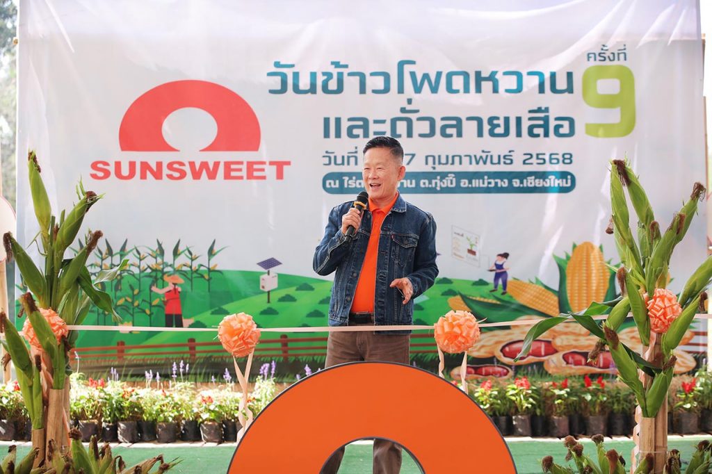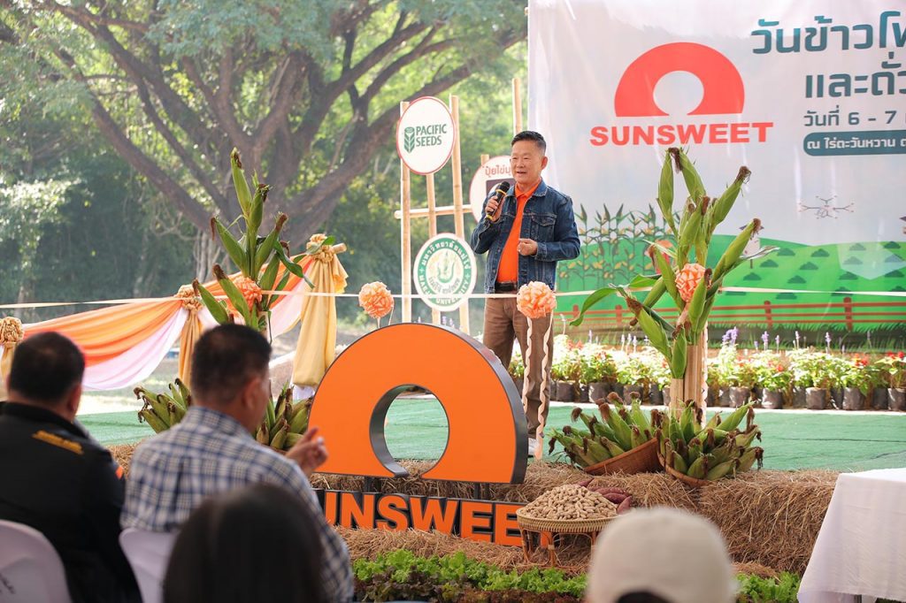 นายองอาจ กิตติคุณชัย ประธานเจ้าหน้าที่บริหาร SUN กล่าวถึงความสำคัญของการจัดงานในครั้งนี้ว่า ตลอดระยะเวลามากกว่า 25 ปีที่ผ่านมา บริษัท ซันสวีท จำกัด (มหาชน) ได้มุ่งมั่นพัฒนาผลิตภัณฑ์ทางการเกษตรด้วยนวัตกรรมและเทคโนโลยีที่ทันสมัย ทั้งในกระบวนการปลูก การจัดหาวัตถุดิบ การผลิต และการพัฒนาสินค้าใหม่อย่างต่อเนื่อง เพื่อเพิ่มประสิทธิภาพการผลิตและสนับสนุนเกษตรกรให้มีรายได้และคุณภาพชีวิตที่ดียิ่งขึ้น งานวันนี้เป็นอีกหนึ่งเวทีสำคัญที่ช่วยเผยแพร่องค์ความรู้และสร้างโอกาสให้เกษตรกรไทยก้าวสู่ยุคเกษตรอัจฉริยะ เพื่อช่วยส่งเสริม เกษตรกรรายย่อย ให้สามารถพัฒนาตนเอง และนำองค์ความรู้ไปใช้ในไร่ของตนเองอย่างเป็นระบบ ซึ่งจะช่วยให้ผลผลิตทางการเกษตรมีคุณภาพสูงขึ้น และเป็นการผลักดันโครงการส่งเสริมเกษตรปลอดการเผา เน้นการดูแลสิ่งแวดล้อม ลด PM 2.5 สร้างมูลค่าเพิ่มจากวัสดุเหลือใช้จากพืชเกษตร แปรรูปเป็นพลังงานสะอาด (Green Energy) นอกจากนี้ยังเป็นโอกาสสำคัญที่พันธมิตรทางธุรกิจและหน่วยงานที่เกี่ยวข้องจะได้พบปะ แลกเปลี่ยนแนวทางในการพัฒนาอุตสาหกรรมเกษตรและอาหารของไทยให้เติบโตร่วมกันอย่างยั่งยืน