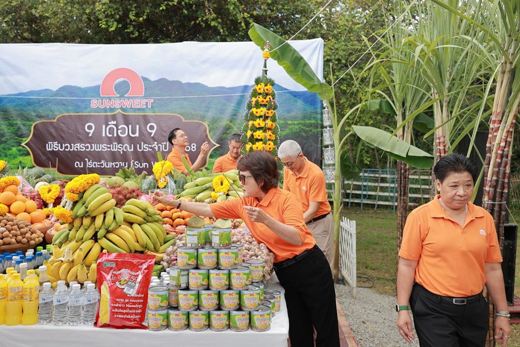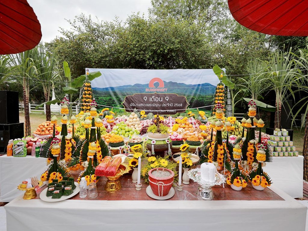 นายองอาจ กิตติคุณชัย ประธานเจ้าหน้าที่บริหาร กล่าวว่า “การบวงสรวงพระพิรุณเป็นประเพณีที่ซันสวีทยึดถือมาโดยตลอด เพราะเราตระหนักดีว่าน้ำและธรรมชาติคือรากฐานสำคัญของการเกษตร พิธีนี้ไม่เพียงเสริมสิริมงคลแก่บริษัทและพนักงาน แต่ยังเป็นการส่งกำลังใจและสร้างความมั่นคงให้กับเครือข่ายเกษตรกรของเรา” บริษัทจัดขึ้น เป็นประจำทุกปีในวันที่ 9 เดือน 9 อันเป็นวันมงคล โดยมีคณะกรรมการบริษัท ผู้บริหาร พนักงาน และเกษตรกรในเครือข่ายเข้าร่วมงาน เพื่อแสดงถึงการขอบคุณและสำนึกในพระคุณของธรรมชาติที่เกื้อหนุนการเพาะปลูก