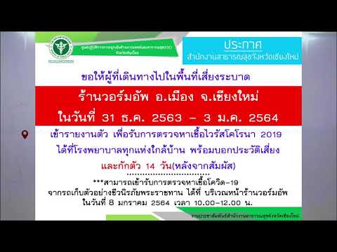 (คลิป) เชียงใหม่ พบติดเชื้อโควิดเพิ่ม 4 คน จากสถานบันเทิงชื่อดังในเชียงใหม่ พร้อมออกประกาศฉบับที่ 5 และ 6 สั่งปิดสถานบันเทิง 14 วัน
