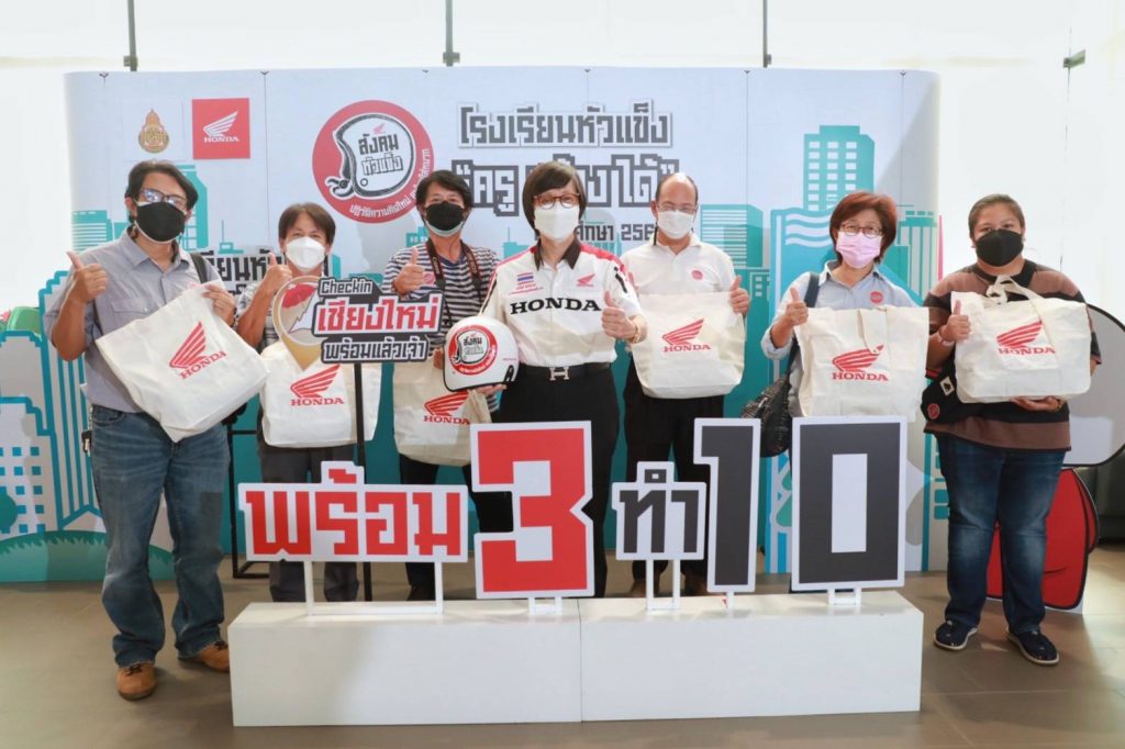 สำหรับ สนามศูนย์ฝึกขับขี่ปลอดภัยฮอนด้า เชียงใหม่ มีโรงเรียนเข้าร่วมกิจกรรม 15 โรงเรียน โดยก่อนเริ่มงานได้มีการตรวจ AKT ผู้เข้าร่วมกิจกรรมทุกคน พร้อมมาตรการป้องกันโควิด 19 อย่างเข้มงวด ซึ่งภายในงานเป็นการจัดกิจกรรมในรูปแบบสร้างสรรค์ ทำงานเป็นทีม ออกแบบกิจกรรมเพื่อการแก้ปัญหาและยกระดับความปลอดภัยในพื้นที่ของโรงเรียนและชุมชนใกล้เคียง ผ่านแนวความคิด “พร้อม 3 ทำ 10” อันหมายถึง โรงเรียนมีความพร้อมใน 3 ด้าน และลงมือทำใน 10 สิ่ง ซึ่งคุณครูทุกคนจะได้รับความรู้และความสนุกสนานอย่างเต็มที่ พร้อมกลับไปสร้างโรงเรียนหัวแข็งให้กับโรงเรียนของตนเองได้อย่างมีประสิทธิภาพ