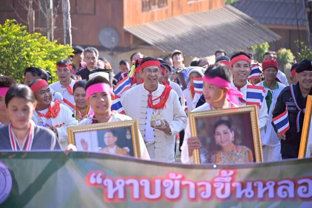 แม่ฮ่องสอนจัดพิธีหาบข้าวขึ้นหลอง รำลึกพระมหากรุณาธิคุณ “ในหลวงรัชกาลที่ 9” พระราชทานธนาคารข้าวแห่งแรกของไทย