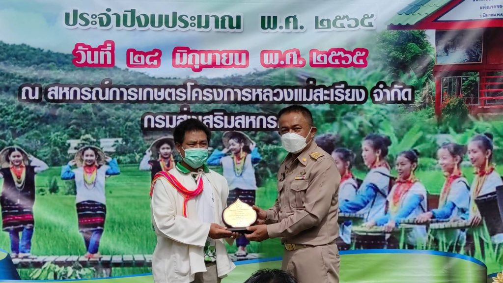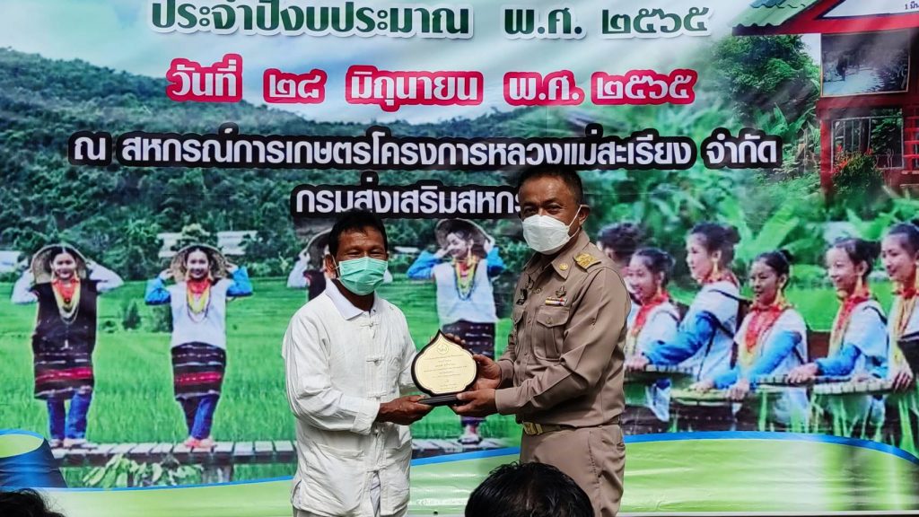 พร้อมกันนี้ นายปรีชา พันธุ์วา รองอธิบดีกรมส่งเสริมสหกรณ์ ได้ มอบโล่รางวัลแก่สหกรณ์และบุคคลดีเด่นในพื้นที่โครงการหลวง ประจำปี พ.ศ. 2564 ประกอบด้วย รางวัลสหกรณ์ในพื้นที่โครงการหลวงดีเด่น จำนวน 2 รางวัล ได้แก่สหกรณ์การเกษตรโครงการหลวงแม่สะเรียง จำกัด และสหกรณ์การเกษตรโครงการหลวงบ้านอมพาย จำกัด รางวัลสมาชิกสหกรณ์ดีเด่น จำนวน 4 รางวัล ได้แก่สมาชิกสหกรณ์การเกษตรโครงการหลวงแม่สะเรียง จำกัด 1 รางวัล สมาชิกสหกรณ์การเกษตรโครงการหลวงบ้านอมพาย จำกัด 1 รางวัล และสหกรณ์พัฒนาพื้นที่สูงแบบโครงการหลวงสบเมย จำกัด 2 รางวัล