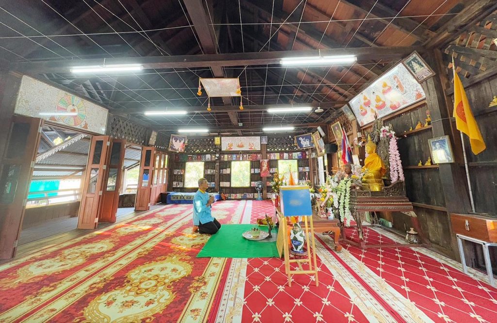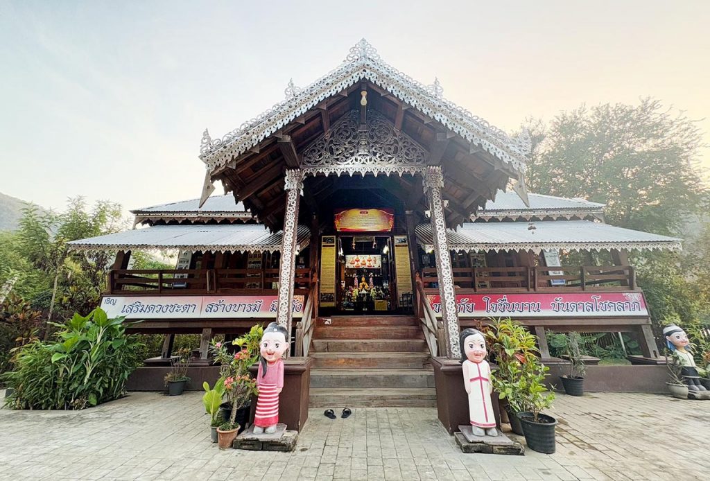 24 มกราคม 2568 นายบุญยิ่ง คีรีสัตยานนท์ อดีตผู้ใหญ่บ้านท่าโป่งแดง หมู่ที่ 5 ตำบลผาบ่อง อำเภอเมือง จังหวัดแม่ฮ่องสอน ได้นำเราไปเยี่ยมชมศาลาเก่าแก่มีอดีตอันยาวนาน อยู่คู่กับเมืองแม่ฮ่องสอนมาแต่โบราณกาล สร้างด้วยไม้แดงทั้งหลัง มีหลังคาสองชั้น ชั้นบนมุงด้วยสังกะสี ชั้นในมุงด้วยไม้ ตั้งอยู่ริมแม่น้ำปาย ศาลาหลังนี้ มีอายุกว่า 160 ปีแล้ว เดิมใช้เป็นท่าเรือที่พ่อค้าชาวพม่านำสินค้ามาพัก เปรียบได้กับด่านศุลกากรในปัจจุบัน ต่อมาเปลี่ยนเป็นวัด โดยมีพระมาจำพรรษา และได้ใช้เป็นอาคารเรียนหลังแรก ของหมู่บ้าน ปัจจุบันได้รับการบูรณะจากงบยุทธศาสตร์จังหวัด ฯ และงบสนับสนุนจากองค์การบริหารส่วนตำบลผาบ่อง ให้มีความคงทนแข็งแรง และได้เสริมแต่งศาลาด้วยศิลปะพื้นบ้านไทใหญ่ คือ ฉลุปานซอย อย่างสวยงาม