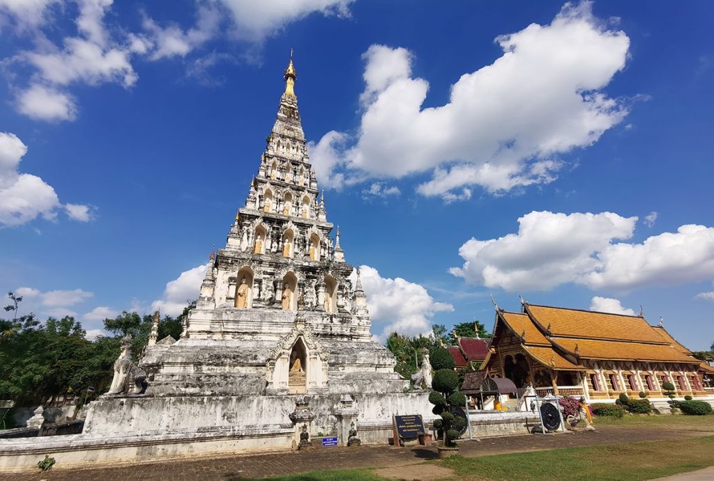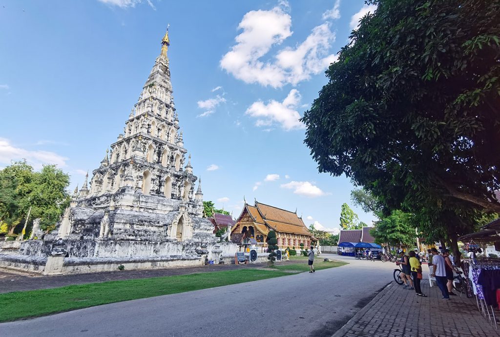 ต่อมาผู้สื่อข่าวได้เดินทางไปที่วัดเพื่อขอทราบข้อเท็จจริง โดยขอเข้าพบ พระครูสังฆพิชัย ดร. (จำนง วรปัญโญ) เจ้าอาวาสวัดเจดีย์เหลี่ยม และให้ข้อมูลว่า ในวันจัดงานเป็นวันที่ 9 พ.ย. 65 ซึ่งวันจัดงานประเพณียี่เป็งเชียง ทางวัดได้มีการจัดถวายพุทธบูชาด้วยการจุดถางประทีป จำนวน 9,999 ดวง เพื่อบูชาองค์พระธาตุเจดีย์เหลี่ยม โดยมีคณะศรัทธาประชาชนที่อยู่บริเวณโดยรอบวัด และคณะศรัทธาที่อยู่ต่างอำเภอ ต่างจังหวัดที่ทราบข่าว ก็ได้เดินทางมาร่วมงาน โดยจุดถางประทีปรอบองค์เจดีย์ ส่วนเรื่องที่มีการจุดพลุนั้น เป็นความคิดของทางคณะกรรมการวัด และคณะศรัทธาที่ไปจ้างช่างทำพลุมาจัดทำกันเอง เพื่อถวายเป็นพุทธบูชา กระทั่งมีคลิปปรากฎออกไป ซึ่งหากดูจากคลิปจริงๆ บริเวณยอดที่เห็นพลุแตกออกเป็นวงกว้าง ไม่ได้จุดที่ตัวองค์พระธาตุ แต่จุดบริเวณด้านองค์พระธาตุ เพียงแต่มุมมองของการถ่ายคลิปได้ประจวบเหมาะพอดี ตัวองค์พระธาตุไม่ได้เกิดความเสียหาย