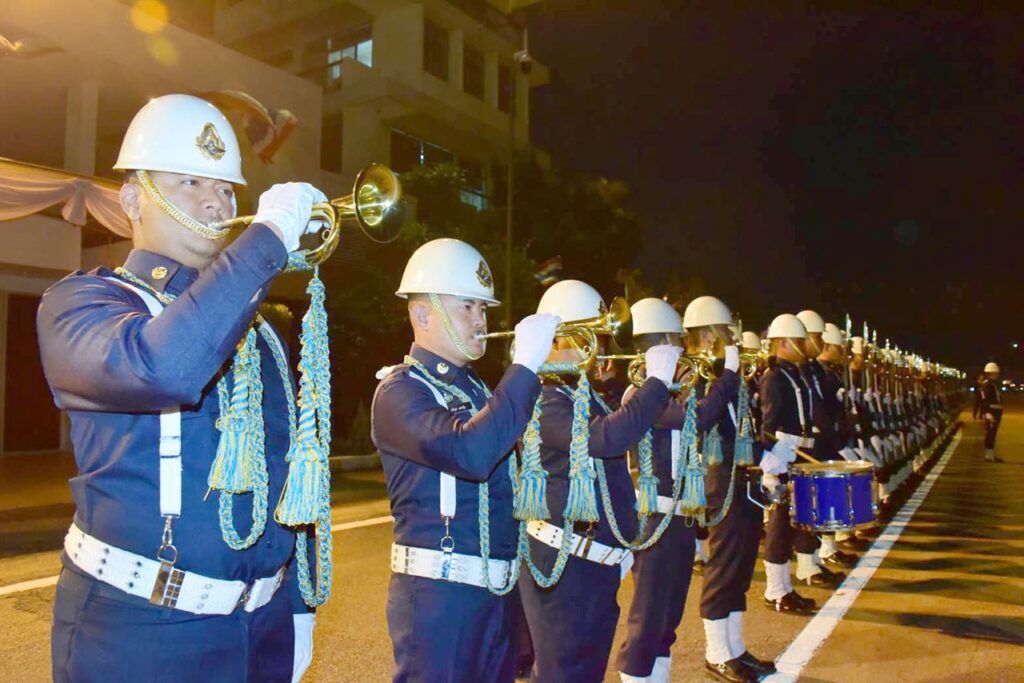 พิธีเริ่มต้นขึ้นอย่างสมเกียรติ โดยทหารกองเกียรติยศได้ตั้งแถวรับร่างของนักบินทั้ง 2 ท่าน ได้แก่