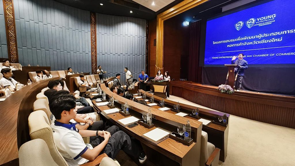 ทั้งนี้ การโครงการอบรมฯ ในครั้งนี้ จัดขึ้นภายใต้แนวคิด “Shaping beyond the Next Normal” เพื่อพัฒนาเครือข่าย และทักษะต่างๆ ให้ผู้ประกอบการรุ่นใหม่ ผ่านวิทยากรชั้นนำ ไม่ว่าจะเป็น กิจกรรมสร้างความสัมพันธ์ (Ice Breaking) โดย คุณสร้อยทับทิม มัณยานนท์ กรรมการผู้จัดบริษัท ร้อยเรื่องดีดี จำกัด และ บริบทหอการค้าเชียงใหม่ บรรยายโดย ดร.กอบกิจ อิสรชีววัฒน์ ประธานกรรมการหอการค้าจังหวัดเชียงใหม่ ดร.ศรพล ตุลยะเสถียร รองผู้จัดการ ตลาดหลักทรัพย์แห่งประเทศไทย มาบรรยายในหัวข้อ “SET Sustainability 2025 และการพลิกโฉมธุรกิจสู่ความยั่งยืน ตามแนว ESG” พร้อมมา Update Business Trends โดย ป้าตือ คุณสมบัษร ถิระสาโรช ต่อด้วย มุมมองธุรกิจในอนาคต กับ AI โดย คุณจิรายุส ทรัพย์ศรีโสภา ผู้ก่อตั้งและประธานเจ้าหน้าที่บริหารบริษัท บิทคับ แคปปิตอล กรุ๊ป